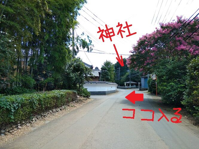 上の白壁のところを入って下さい。神社まで行ったら行きすぎです。